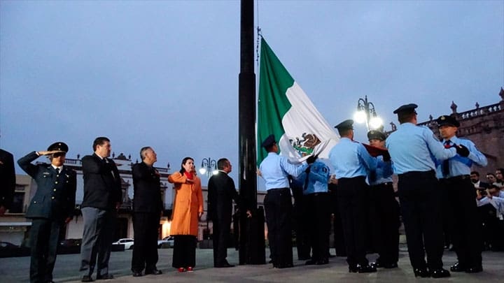 Encabezan el Izamiento de la Bandera Nacional a media asta, en conmemoración del sismo ocurrido el 19 de Septiembre de 1985.