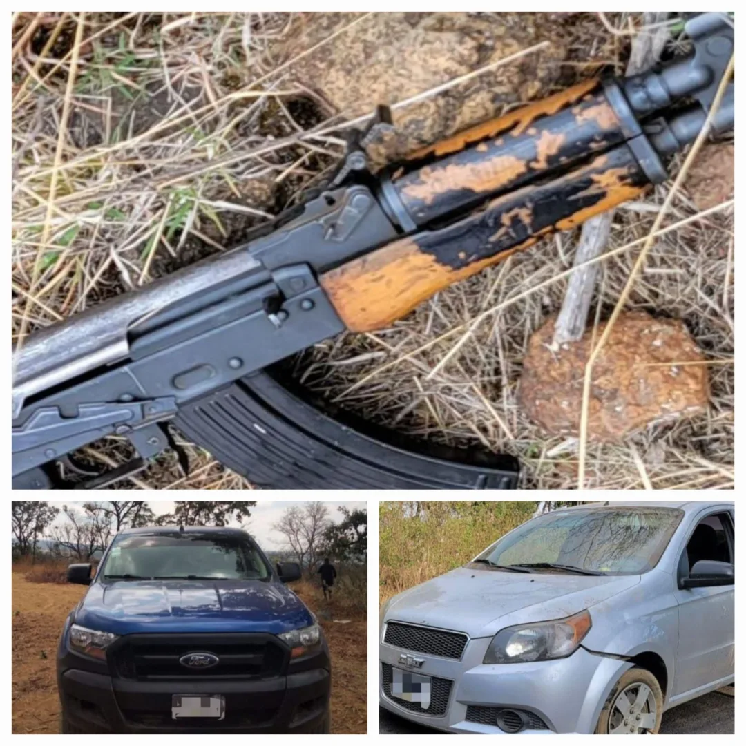 Al llegar al sitio, los agentes encontraron dos vehículos marcas Ford y Chevrolet, que al verificar sus antecedentes se confirmó que contaban con reporte de robo. También hallaron un fusil calibre 7.62X39 y el cuerpo sin vida de un hombre, cuya identidad no ha sido revelada.