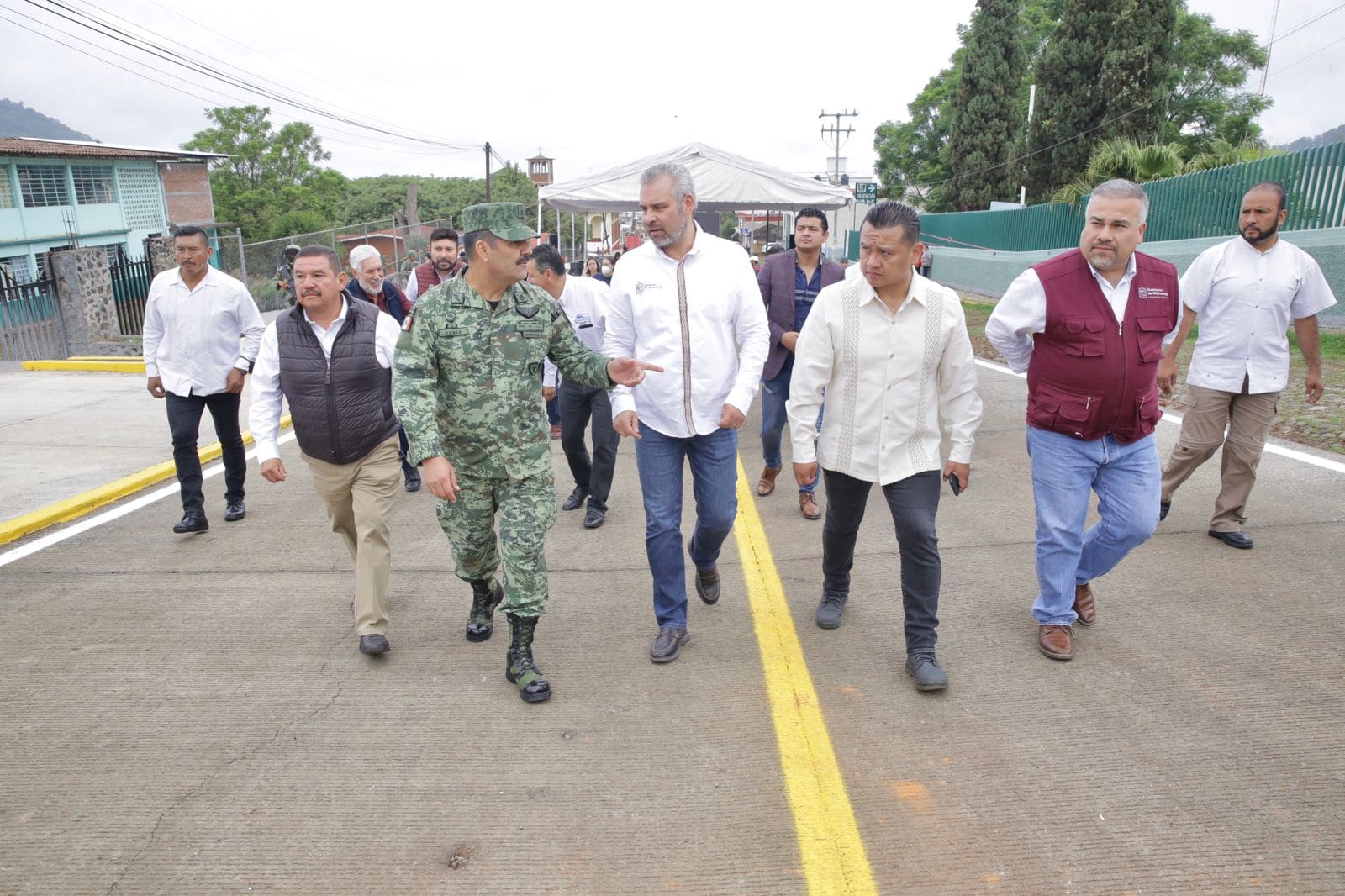 Acompañaron al gobernador el secretario de Gobierno, Carlos Torres Piña; el general de brigada, Francisco Javier Zubia González, comandante de la 21 Zona Militar; Macarena Chávez Flores, diputada federal por el Distrito 11 Pátzcuaro; José Zavala Nolasco, secretario de Comunicaciones y Obras Públicas; Luis Roberto Arias Reyes, coordinador general de la Comisión Estatal del Agua y Gestión de Cuencas, y Jesús Antonio Mora González, vocal ejecutivo del Centro Estatal de Desarrollo Municipal (Cedemun).