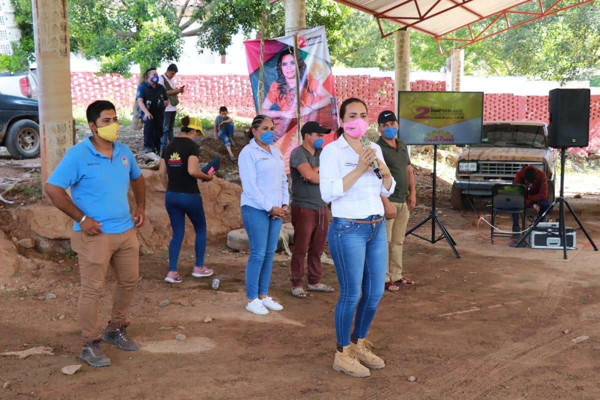 Carácuaro, Michoacán, a 19 de agosto de 2020.- Como parte del segundo día de actividades de la Gira del Segundo Informe para dar a conocer los avances de su Gobierno y sin importar las distancias, la presidenta municipal de Carácuaro, Elisenda Garduño Garduño visitó este martes la comunidad de Zirandangastico, donde hizo entrega formal del sistema de agua potable.