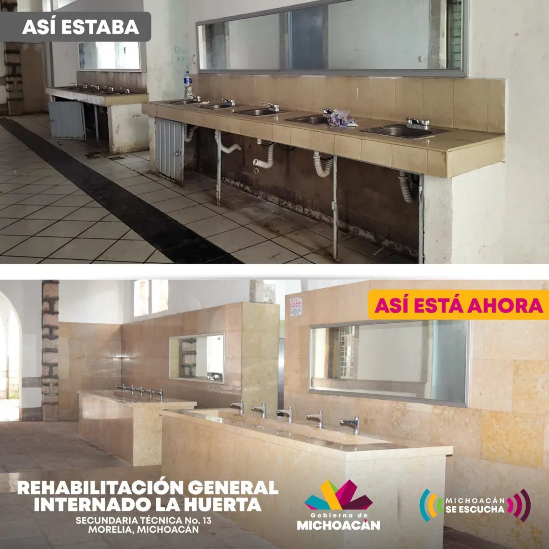 Los trabajos de remodelación comprendieron diversas áreas de la Escuela Secundaria Técnica Número 13, nombre oficial del plantel, entre éstas el comedor, dormitorios y sanitarios.