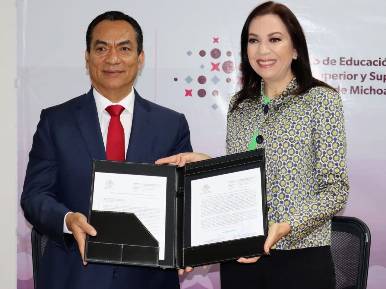Morelia, Michoacán, 23 de noviembre del 2022.- Mariana Sosa Olmeda, directora general del Instituto de Educación Media Superior y Superior del Estado de Michoacán (IEMSySEM), entregó al Fiscal General del Estado, Adrián López Solís, el dictamen positivo del Plan y Programa de Estudios de la Maestría en Derecho Penal y Procesal Penal.