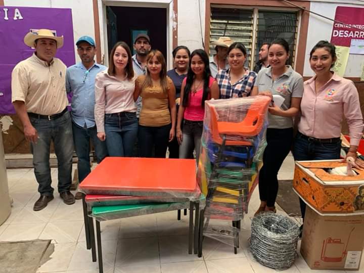 Tuzantla, Michoacán. – La presidenta municipal Psic. Jazmín Arroyo Martínez realizó la entrega de diversos apoyos sociales, como son, material para el mejoramiento de vivienda y material para trabajo en el campo. Además, de entregar mobiliario para el preescolar de la localidad de Los Otates.