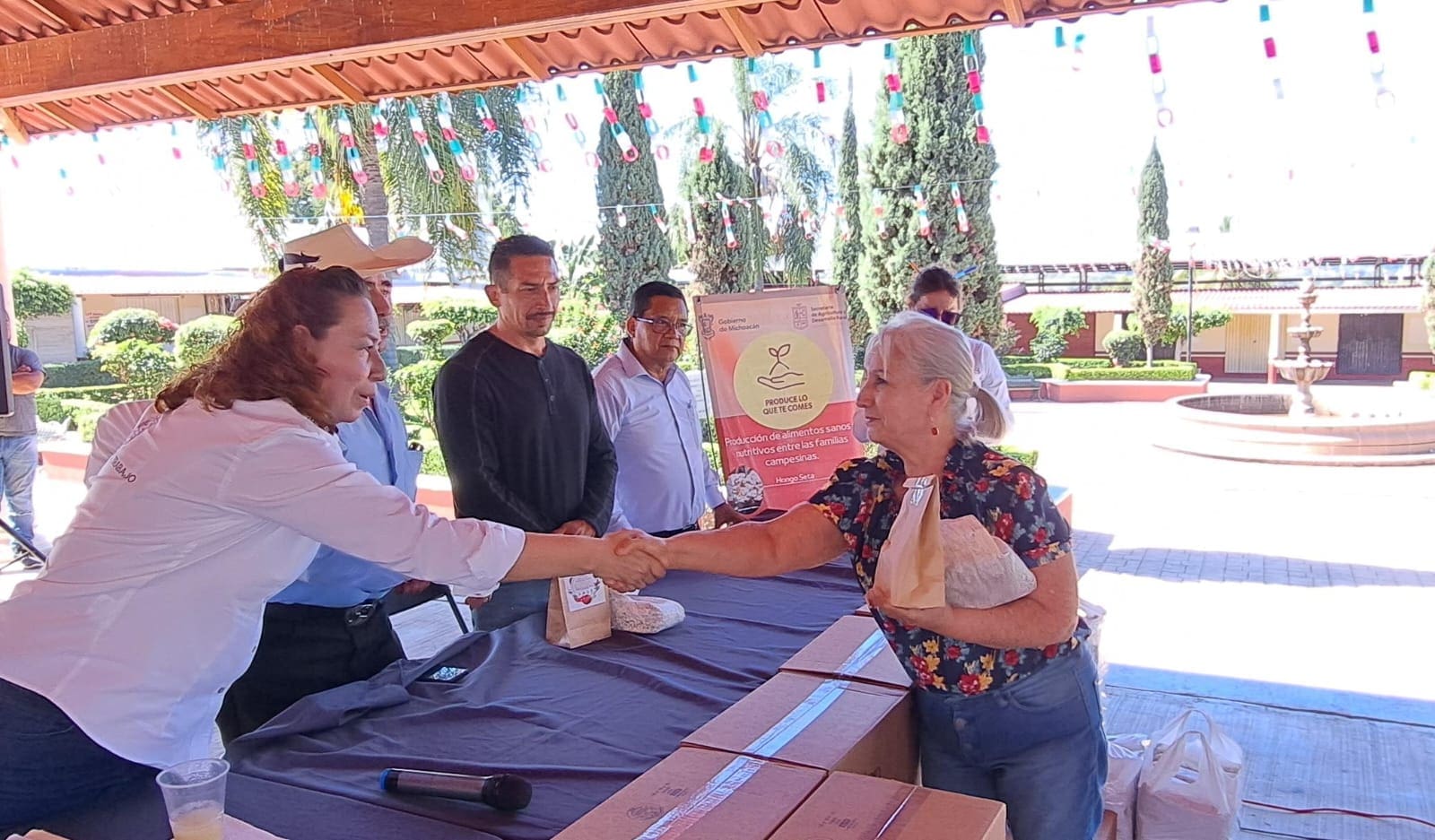 Taretan, Michoacán, 16 de noviembre de 2023.- En beneficio de 830 familias de siete municipios de la región Meseta Purépecha, la Secretaría de Agricultura y Desarrollo Rural (Sader) entregó paquetes de hortalizas y de micelio de hongo seta.