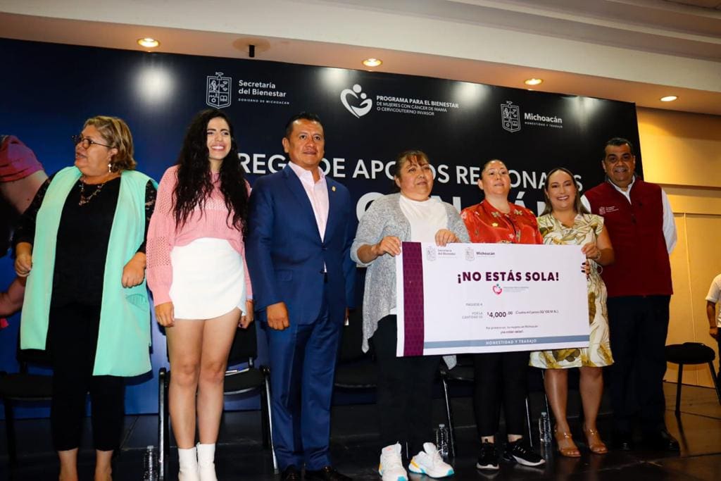 En tanto, Grisel Tello Pimentel, presidenta honoraria del Sistema DIF Michoacán, recordó que desde hace dos años este programa ha transformado la vida de las michoacanas que luchan contra el cáncer. “Ustedes son pacientes que cuidan otras vidas, sus hijos, y sabemos que quieren verlos crecer y pensando en darle un poco de tranquilidad, se creó este apoyo”, señaló.