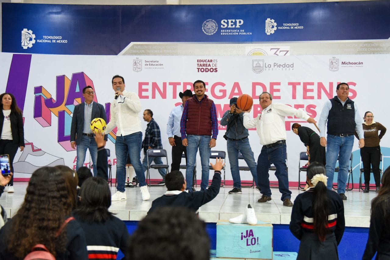 La Piedad, Michoacán, 30 de noviembre de 2023.- Con el objetivo de apoyar a las familias michoacanas en la provisión de un calzado para la educación de sus hijas e hijos, se entregaron en la región Bajío 6 mil 114 pares de tenis como parte del programa Jalo a Estudiar para estudiantes de secundaria de seis municipios.