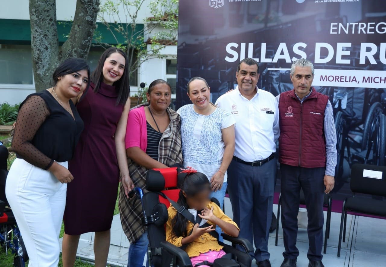 Morelia, Michoacán, 20 de septiembre de 2023.- Para mejorar su calidad de vida y movilidad, la Secretaría de Salud de Michoacán (SSM), a través del Patrimonio de la Beneficencia Pública, y el Sistema para el Desarrollo Integral de la Familia (DIF), entregaron 12 sillas de ruedas neurológicas tipo PCI a menores con discapacidad motriz.