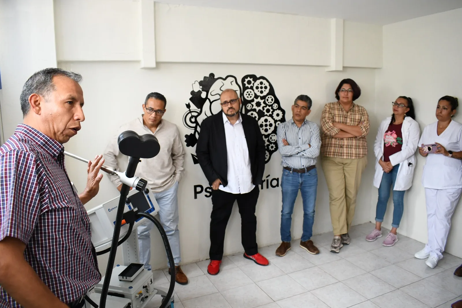 Morelia, Michoacán, 20 de diciembre de 2023 .- Con una inversión de 3.5 millones de pesos, la Secretaría de Salud de Michoacán (SSM) equipó con una máquina de estimulación magnética transcraneal al Hospital Psiquiátrico de Morelia, aparato que tratará con éxito los trastornos de depresión, ansiedad, insomnio y síndrome de burnout, entre otros.