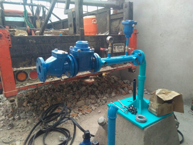 También se contempla la colocación de un tren de piezas especiales que se compone de diversos elementos y la construcción de una caseta para el equipo de cloración, el cual consiste en una bomba dosificadora de líquidos y un tanque de polietileno de 450 litros para la solución diluida de hipoclorito de sodio.