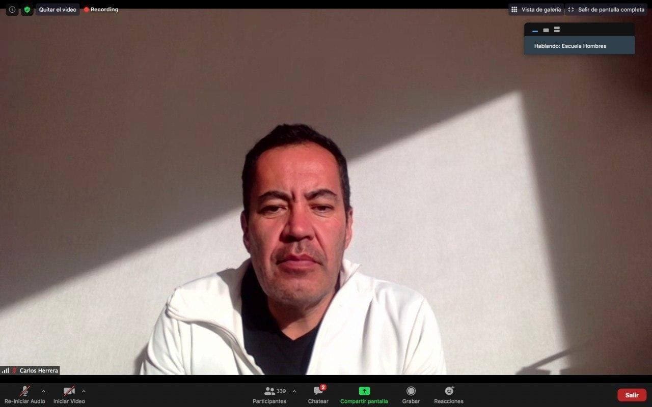 Herrera Tello comentó que desde el aislamiento asiste a las sesiones de la Escuela para Hombres para escuchar a las y los especialistas que abordarán diversas temáticas.
