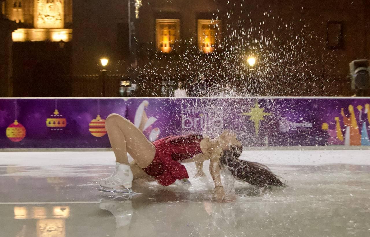 Morelia, Michoacán; 6 de enero de 2023.- Para cerrar con broche de oro las espectaculares presentaciones que engalanaron la pista de hielo que colocó el DIF Morelia, que encabeza la presidenta Paola Delgadillo Hernández, este viernes, el dúo de hermanas patinadoras Alejandra Osuna y Camila Pérez dieron un show que dejó en el asombro al público asistente.