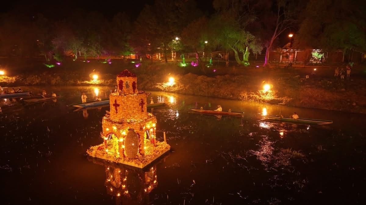 El evento consiste en un desfile de canoas iluminadas que rinde homenaje a los seres queridos que han partido, creando un ambiente lleno de simbolismo y belleza. Antes del desfile, los visitantes tienen la oportunidad de explorar el área a pie, disfrutando de la fragancia de la flor de cempasúchil y la cálida luz de las velas que guían su recorrido hacia los manantiales.