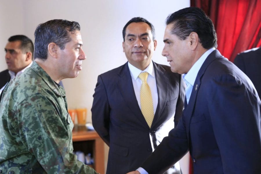 También el comandante de la 43 Zona Militar, general Cruz Isaac Muñoz Navarro; el comandante de la XII Región Militar, general Miguel Ángel Patiño Canchola; el coordinador estatal de la Policía Federal, Francisco Israel Galván Jaime, el comandante de la 10 Zona Naval, vicealmirante Gonzalo Ortiz Guzmán, y el subsecretario de Seguridad Pública estatal, Carlos Gómez Arrieta, entre otros servidores públicos.