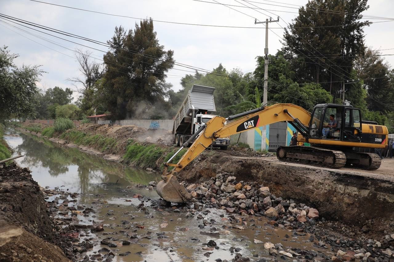 La maquinaria del Ayuntamiento se mantiene trabajando las 24 horas sin parar; al momento se están colocando piedras en el interior para estabilizar la base del dren, compartió el alcalde.