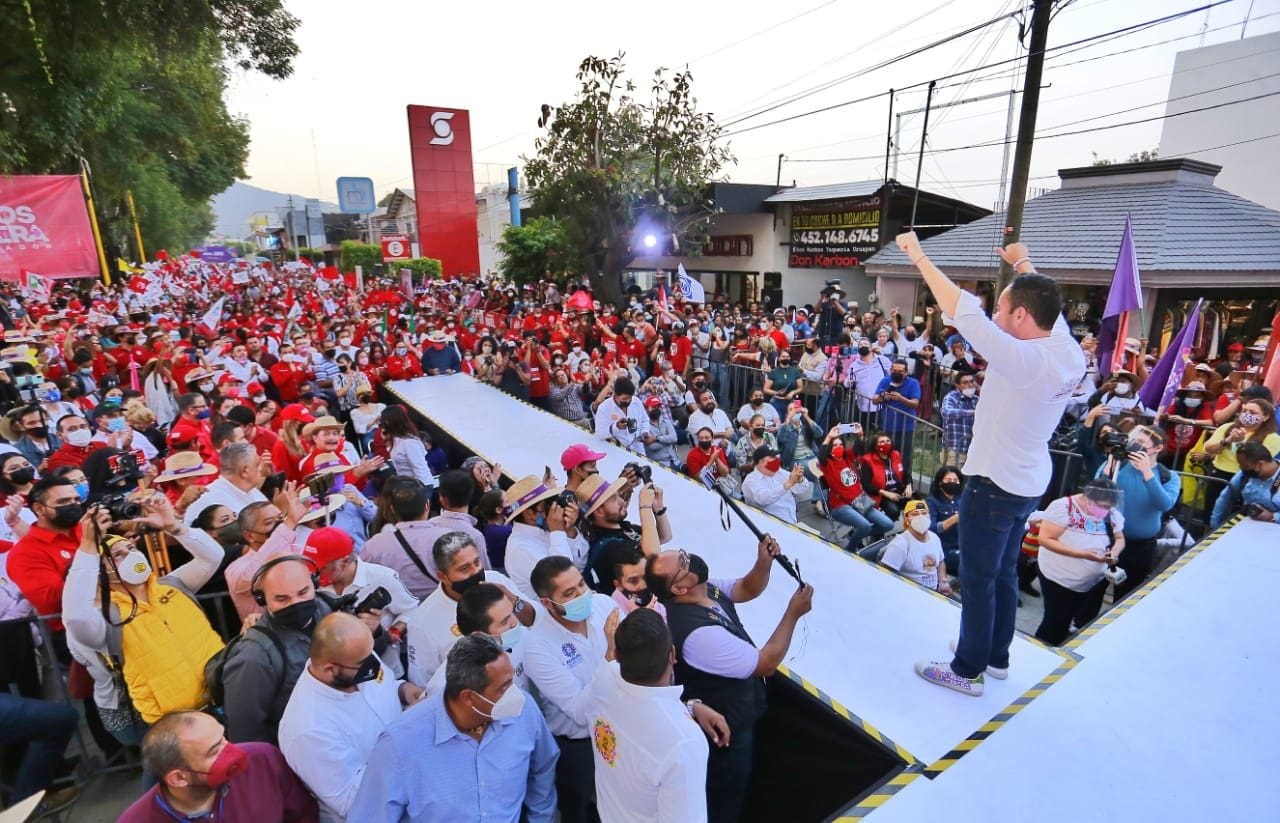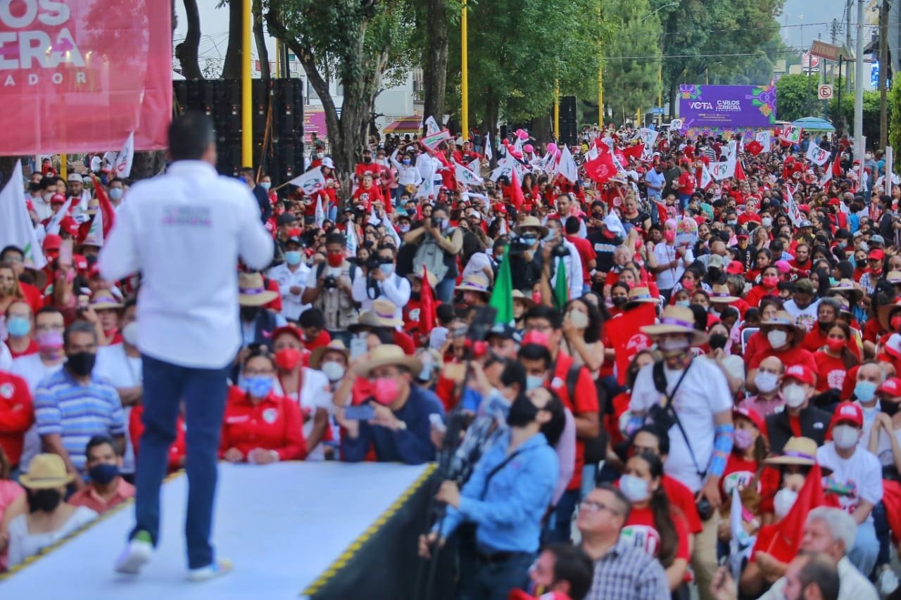 “Vamos arriba. Los superamos hace una semana y sus propias encuestas ratifican que nosotros vamos a ganar”, remarcó ante la multitud priista.