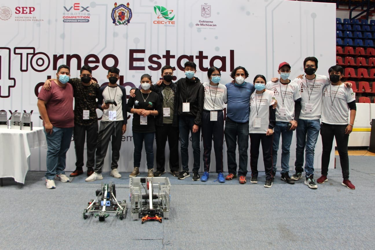 Morelia, Michoacán, 3 de diciembre de 2021.- Alumnos del Colegio de Estudios Científicos y Tecnológicos del Estado de Michoacán (CECyTEM) que ganaron el concurso local de Robótica, representarán al subsistema en los eventos, nacional e internacional a realizarse el próximo año en Chiapas y en Estados Unidos, respectivamente.