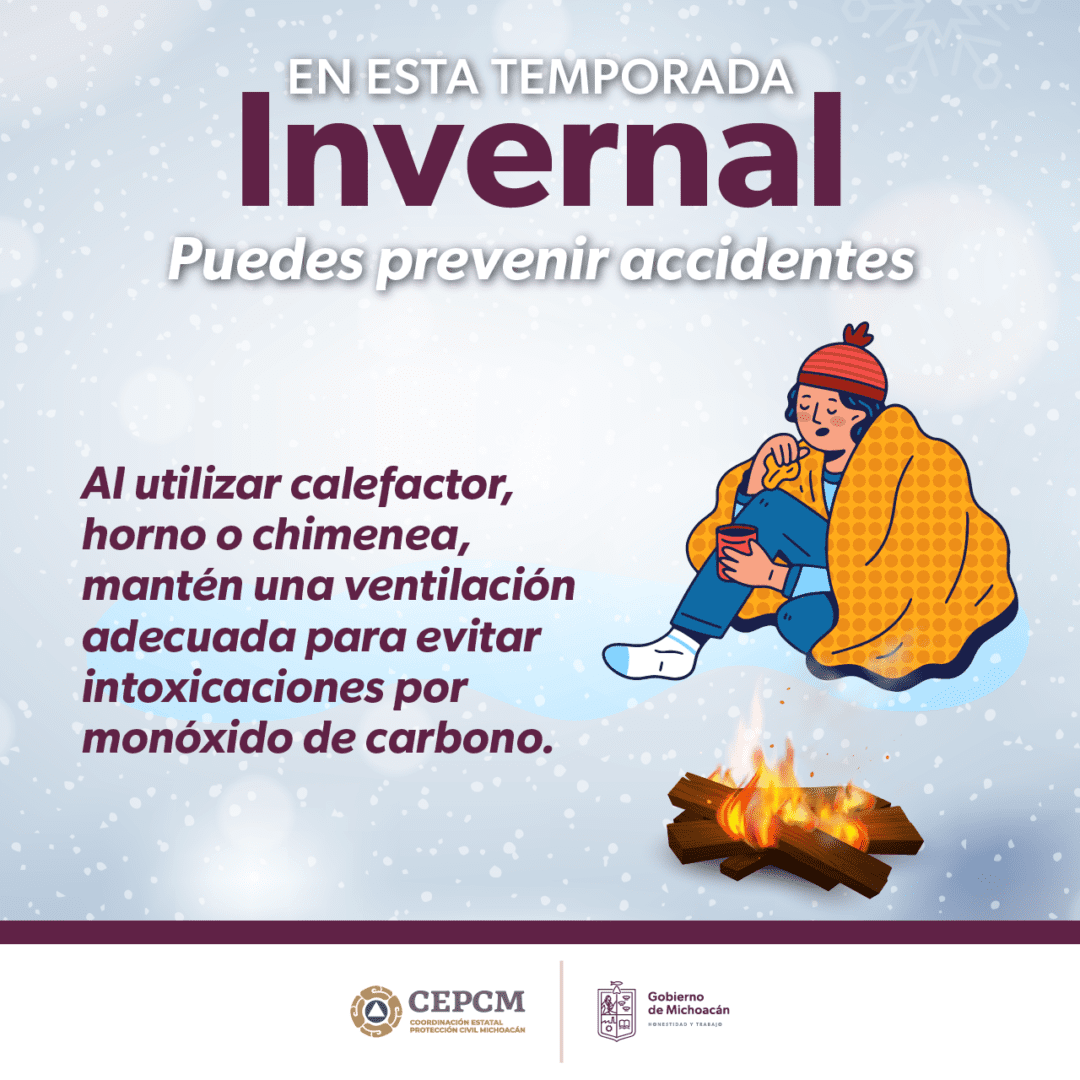 Morelia, Michoacán, 3 de enero de 2022.- La Secretaría de Gobierno, a través de la Coordinación Estatal de Protección Civil exhorta a la población michoacana a tomar previsiones por las bajas temperaturas que prevalecerán en la entidad.