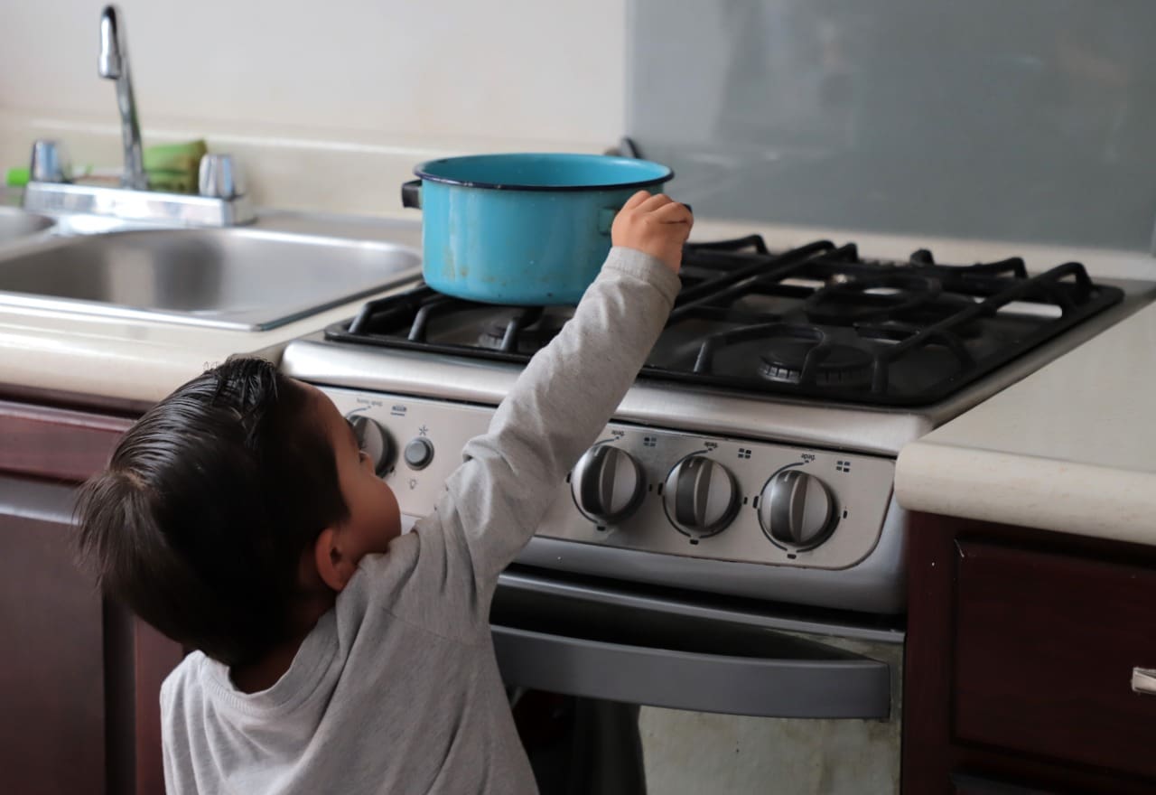 Se aconseja tapar cacerolas y sartenes, evitar que los mangos sobresalgan del perímetro de la estufa, así como impedir que los niños tengan al alcance cerillos, encendedores y pólvora; tapar los enchufes eléctricos con placas de plástico para evitar que los pequeños introduzcan sus dedos es indispensable y asegurar que extensiones o instalaciones eléctricas estén bien amarradas y escondidas para evitar caídas.