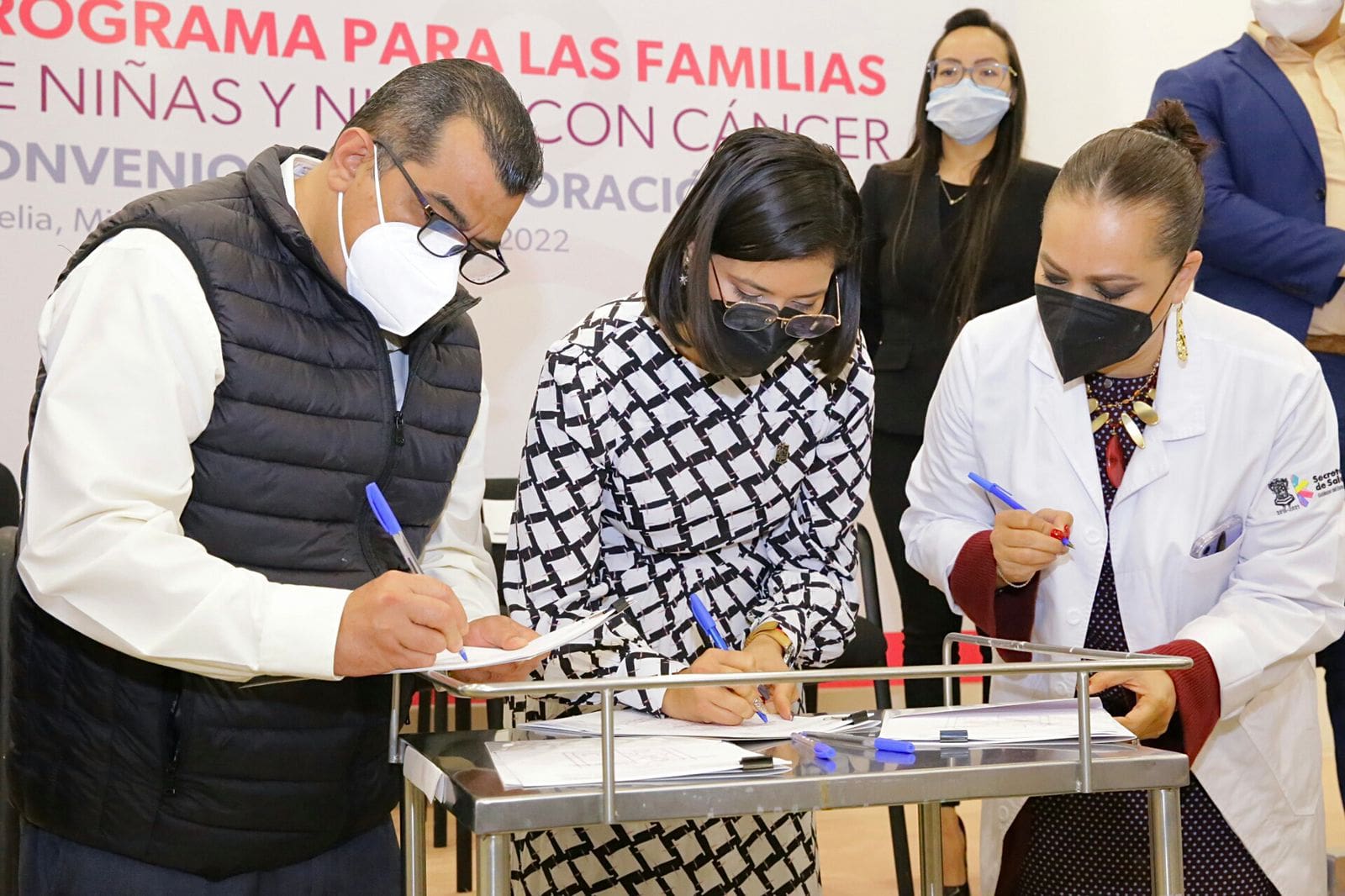Morelia, Michoacán, 26 de enero del 2022.- El Gobierno del Michoacán, a través de la Secretaría del Bienestar, signó un convenio con autoridades del sector salud para poner en marcha y operación el Programa para el Bienestar de Familias Cuidadoras de Niñas y Niños con Cáncer, a fin de otorgar 4 mil pesos mensuales a quienes tutelan a menores de 18 años con este padecimiento.