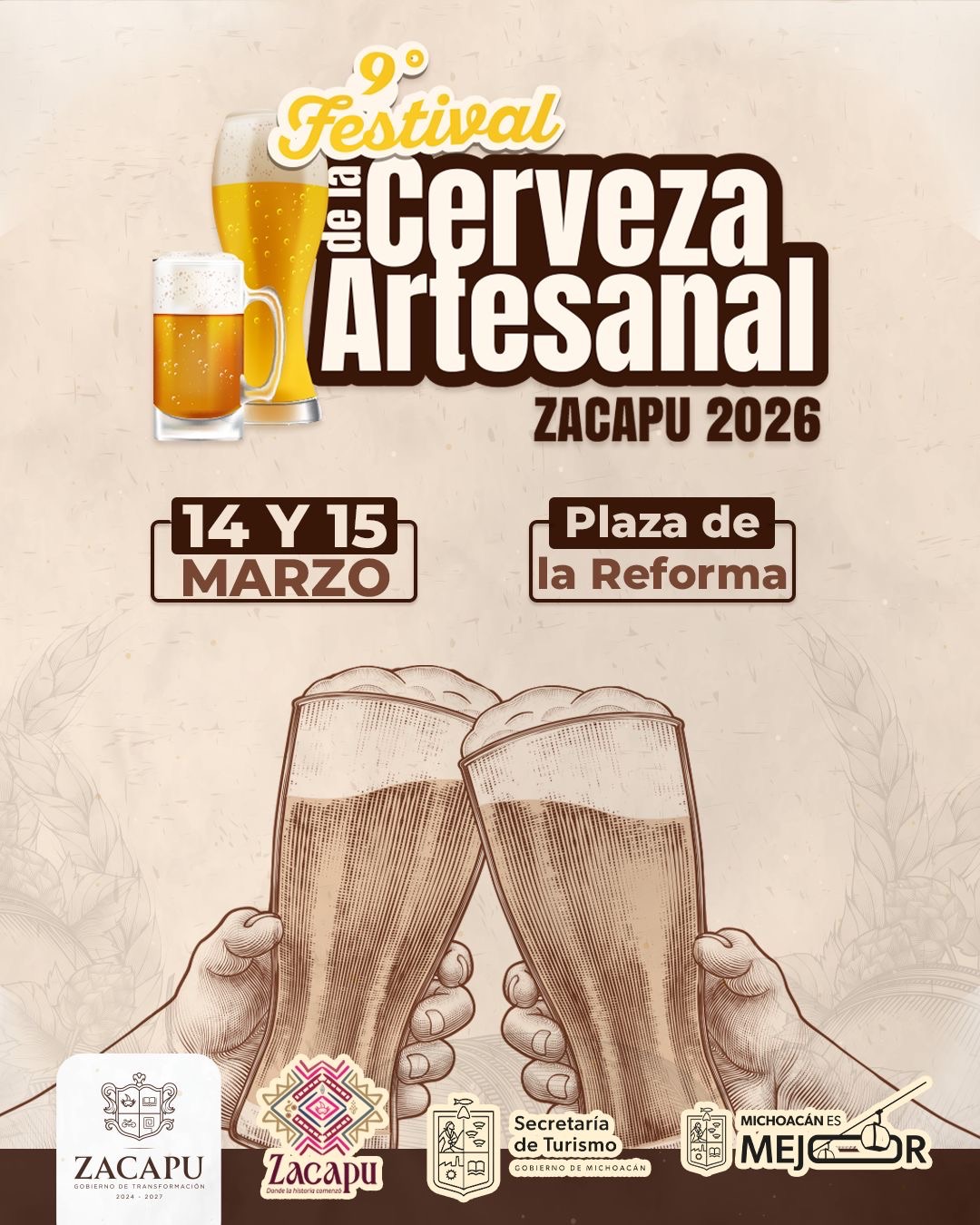 La Secretaría de Turismo de Michoacán (Sectur) confirmó la realización del Festival de la Cerveza Artesanal, el cual tendrá lugar los días 14 y 15 de marzo en la Plaza Reforma del municipio de Zacapu. De acuerdo con las autoridades locales, el encuentro contará con la participación de más de 15 expositores especializados, con una expectativa de asistencia superior a los 20 mil visitantes y una derrama económica estimada en 2 millones de pesos.