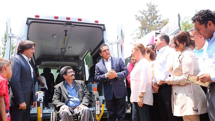Explicó que los 25 vehículos adaptados para personas con discapacidad, entregados a igual número de municipios, se suman a las tres unidades que ya se habían entregado, lo que da un total de 28 vehículos los gestionados por el Gobierno Estatal y representa una inversión de 20 millones 380 mil pesos, correspondientes al Fondo Federal de Accesibilidad en el Transporte Público para Personas con Discapacidad 2016.