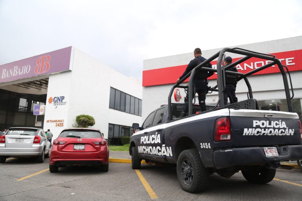 Las acciones de inspección y vigilancia, son efectuadas por el personal de la Policía Michoacán quienes se encuentran desplegados en sitios de mayor afluencia, como zonas bancarias, para garantizar el desarrollo de transacciones y actividades de los cuentahabientes.