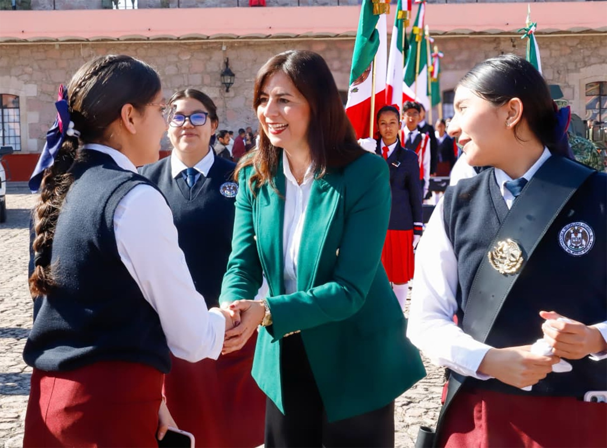 La titular de la Secretaría de Educación del Estado (SEE), Gabriela Molina, informó que se implementan acciones para reforzar la formación cívica en más de 11 mil planteles de la entidad, como parte del Plan Michoacán por la Paz y la Justicia. El anuncio se realizó tras su asistencia a la Ceremonia Cívica por el Día de la Bandera y el Abanderamiento a Instituciones Educativas en la XXI Zona Militar.