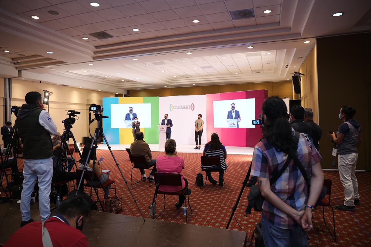 En conferencia de prensa y acompañado de Diana Carpio Ríos, secretaria de Salud en Michoacán y de Armando Hurtado, secretario de Gobierno, el Gobernador invitó a la población a quedarse en casa y evitar asistir a reuniones y a lugares con aglomeraciones.