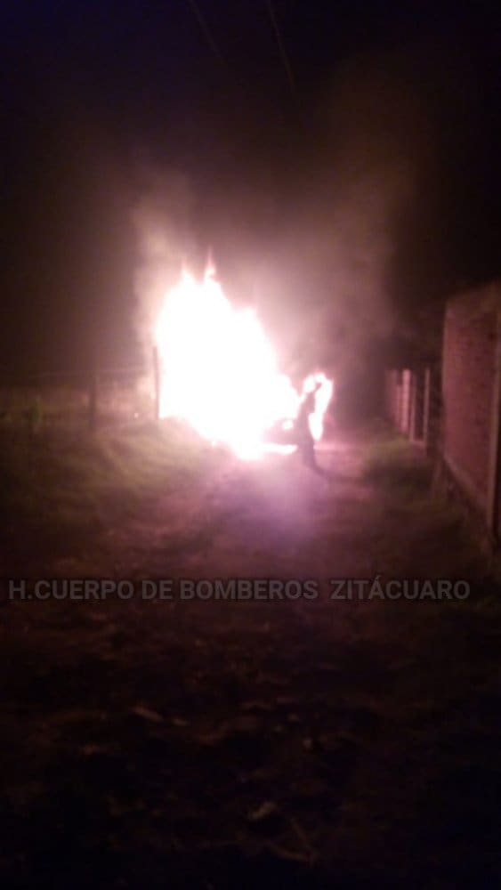 Fuego consume taxi abandonado en Zitácuaro