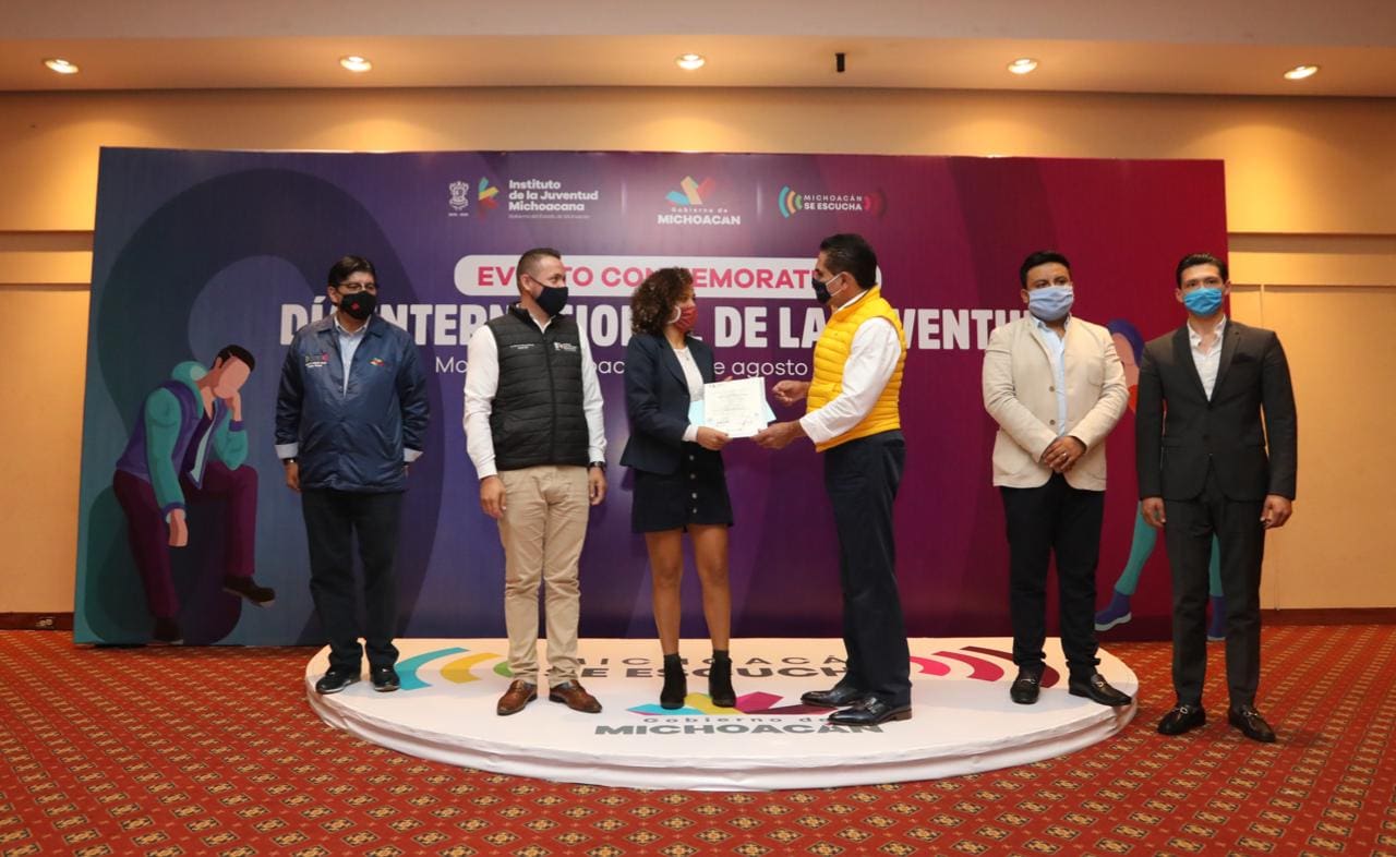 Para celebrar este día, el Gobierno del Estado a través del Ijumich entregó constancias de terminación del Servicio Social a 25 jóvenes, 10 becas del ICATMI para la capacitación de jóvenes para un trabajo y tres créditos de Sí Financia a jóvenes empresarios.