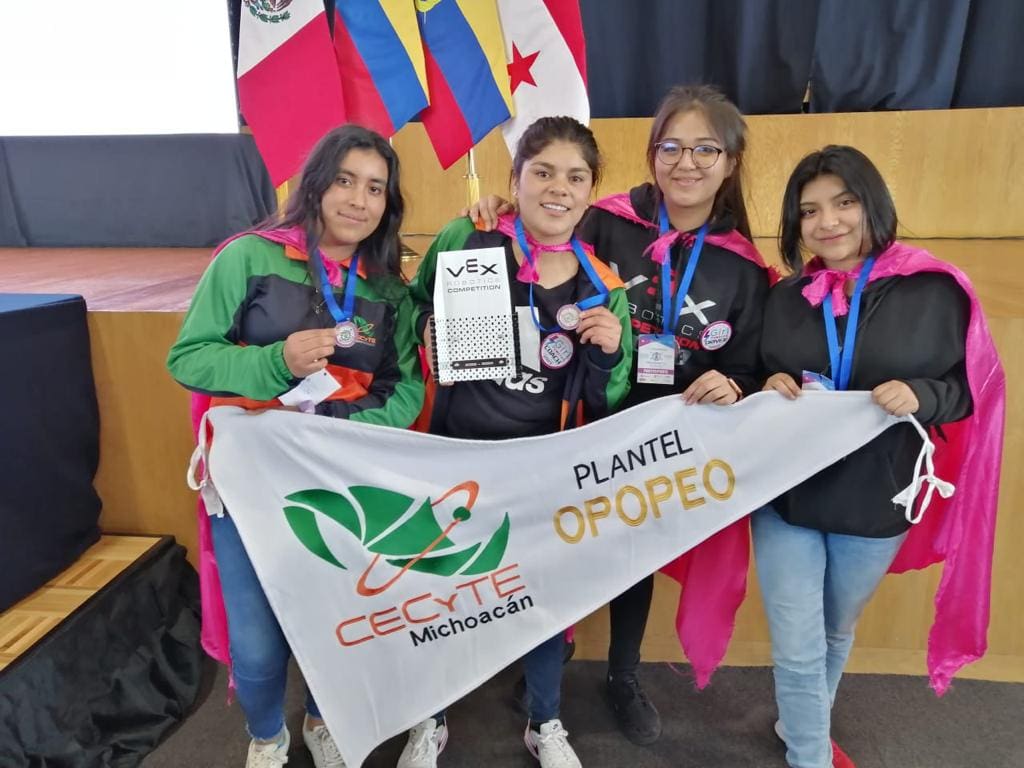 Ciudad de México, 5 de febrero de 2023.- Con un segundo lugar y trofeo en la categoría de trabajo en equipo, alumnas del Colegio de Estudios Científicos y Tecnológicos del Estado de Michoacán (Cecytem), destacan en el primer Torneo de robótica femenil Girl Powered International Fest, el cual se desarrolló en Ciudad de México.
