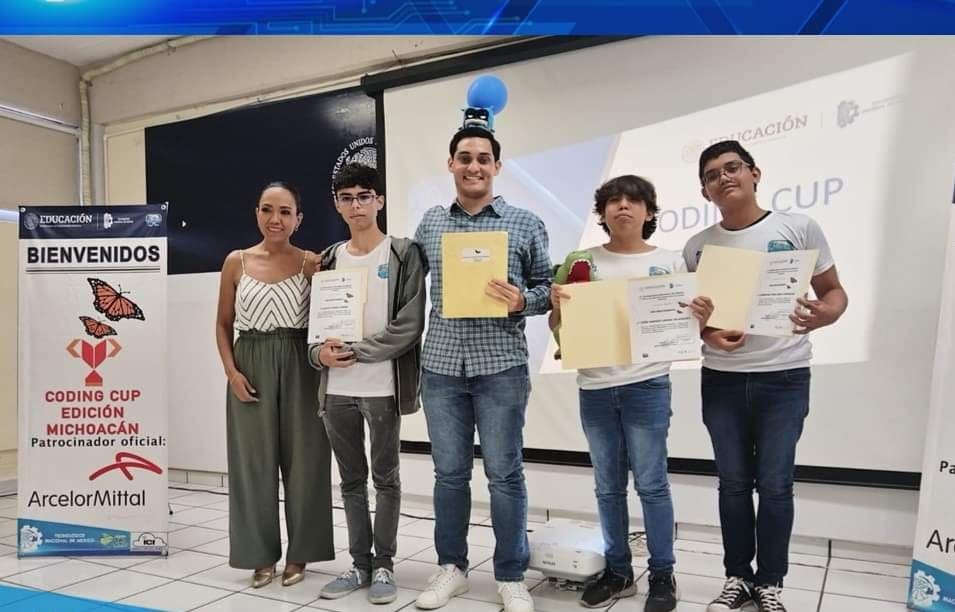 Morelia, Michoacán, 8 de junio de 2023.- Estudiantes del Colegio de Estudios Científicos y Tecnológicos del Estado de Michoacán (Cecytem), consiguieron el primer lugar en el 4to. Concurso de Programación CODING CUP, edición Michoacán 2023.
