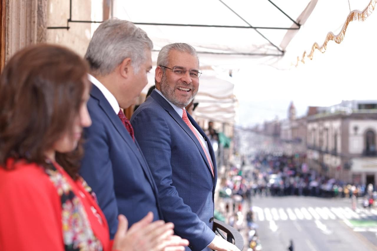 Al gobernador Bedolla lo acompañaron importantes figuras del ámbito político y militar, entre ellos, Jorge Reséndiz García, presidente del Supremo Tribunal de Justicia; Juan Antonio Magaña de la Mora, presidente de la Mesa Directiva del Congreso del Estado; el coronel de infantería Marco Antonio Mendoza Mendoza; Eugenio López Arellanes, coordinador estatal de la Guardia Nacional; Carlos Torres Piña, secretario de Gobierno; Adrián López Solís, fiscal General; Fabiola Alanís Sámano, presidenta de la Junta de Coordinación Política del Congreso, además de secretarias y secretarios del Gobierno del Estado.