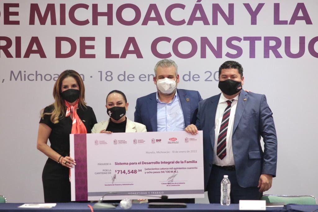En el evento, donde también participaron constructores, el Comité de Damas de la CMIC, funcionarios estatales y el Consejo Coordinador empresarial, la cámara entregó un cheque en apoyo a las acciones que realiza el sistema DIF Michoacán.