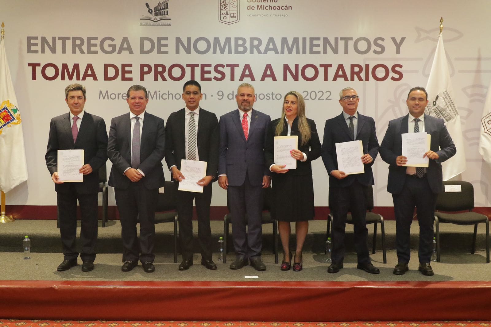 Los notarios que antes eran adscritos y que tomaron protesta como titulares son; Armando Arriaga Diez y Cinthia Ballinas Ocarán de las notarías 12 y 120 de Morelia; mientras que del municipio de Zamora fueron José David Mateo de la Notaría 78; Eduardo Rosas Larios, de la 96 y Oscar Rebollo Rico de la 131.