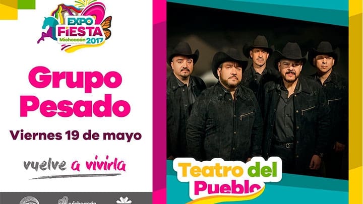 Morelia, Michoacán.- Esta noche Grupo Pesado llega al escenario del Teatro del Pueblo de la Expo Fiesta Michoacán, donde deleitará con sus éxitos a todos sus fans.