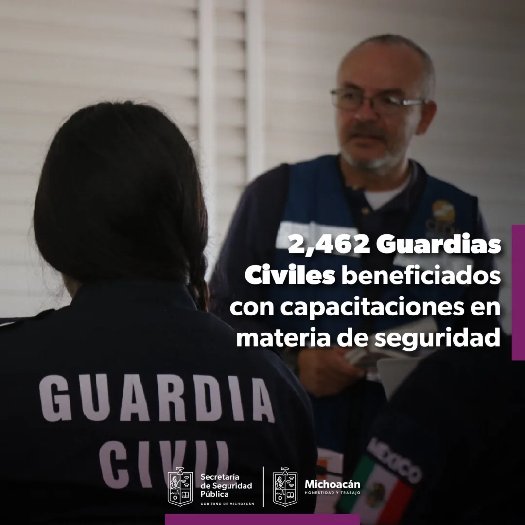Es así que 2 mil 462 guardias civiles han sido beneficiados al recibir información y herramientas necesarias para un oportuno actuar policial con temas como policía de reacción, medicina táctica, taller del uso de la fuerza y armas de fuego en la seguridad pública, atención a víctimas y grupos vulnerables, entre otros que establece el programa rector de capacitación expedido por el Secretariado Ejecutivo del Sistema Nacional de Seguridad Pública (SESNSP).