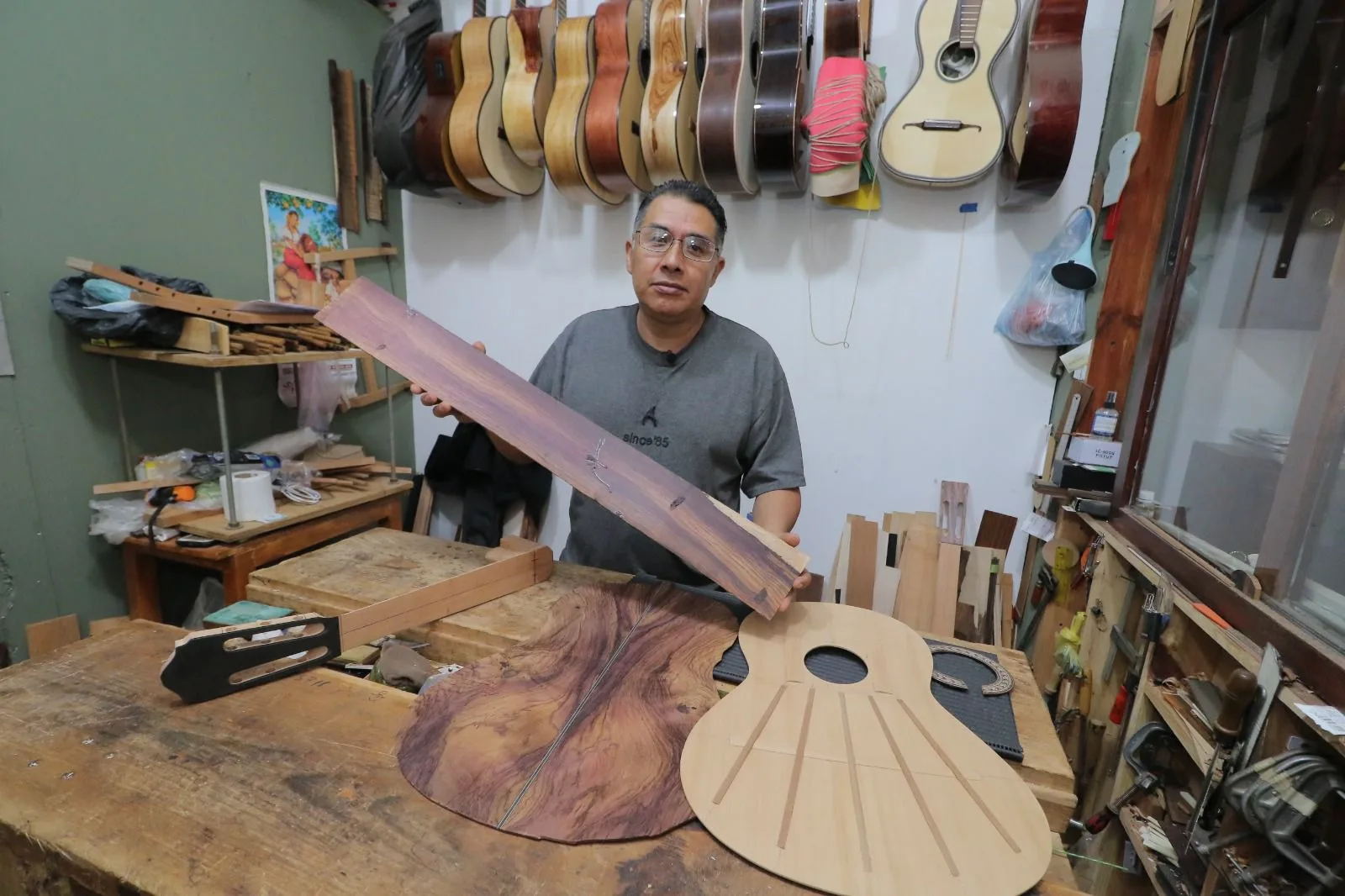 Uno de ellos es Roberto Escobedo, quien explica que en Paracho se elaboran principalmente las guitarras clásicas, populares, flamencas y texanas, cuyos nombres corresponden a característica particulares, acordes al sonido que se busca crear a través de estas obras de arte.