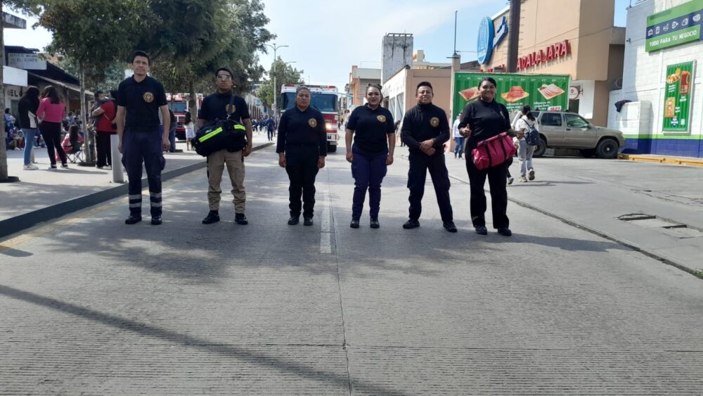 La participación de los cuerpos de emergencia inició a las 10:30 horas a la altura de la calle Lilian’s Coffees. El despliegue incluyó la Unidad de Respuesta Inmediata 1916, así como los camiones motobomba BZ 19-07 y el vehículo especializado “Zamuray 225”. El trayecto avanzó de sur a norte sobre la vía principal hasta la calle Moctezuma, donde concluyó la intervención de los bomberos alrededor de las 12:32 horas.