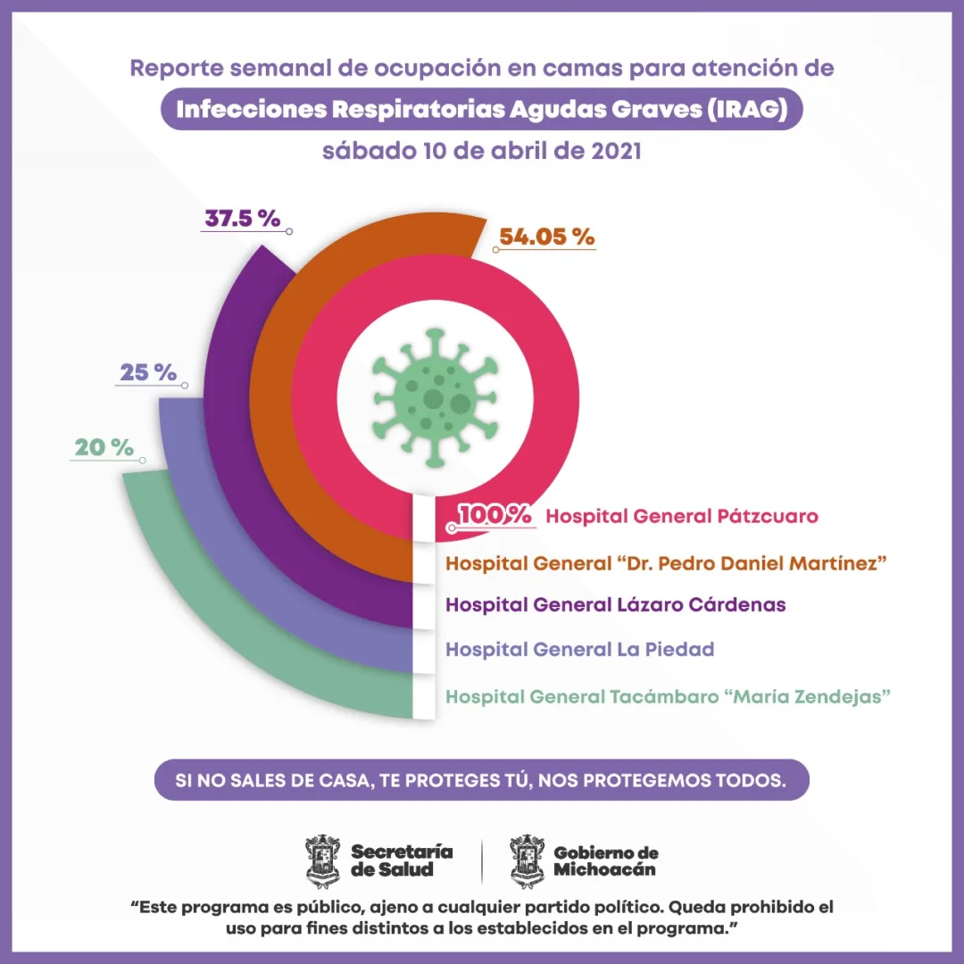 En el caso de Pátzcuaro y Uruapan, ambas unidades médicas mantienen una ocupación al alza desde hace unas semanas, esto, derivado de la dispersión sostenida del virus en ambos municipios.