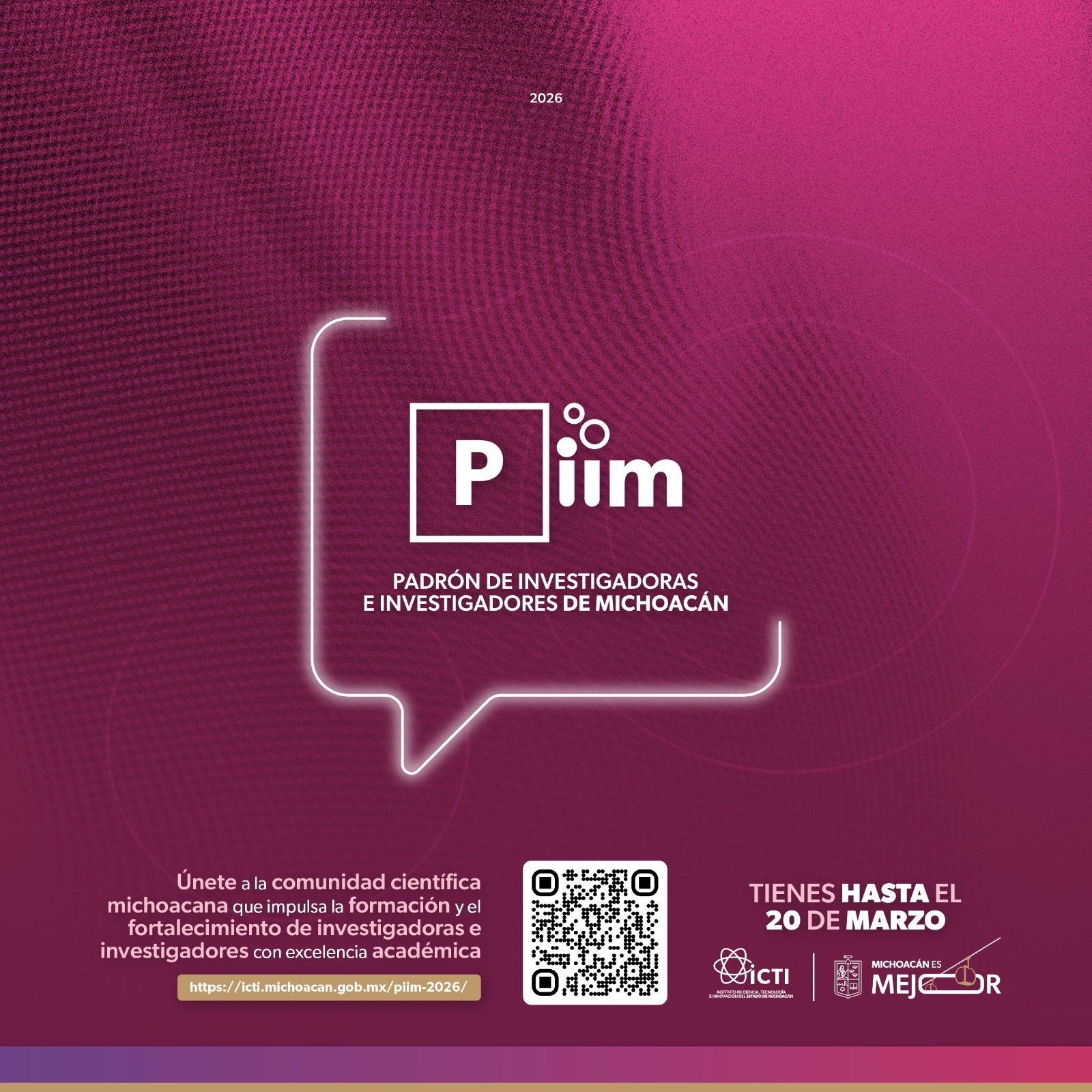 El Instituto de Ciencia, Tecnología e Innovación (ICTI) de Michoacán informó este martes sobre la apertura de la quinta edición de la convocatoria para integrar el Padrón de Investigadoras e Investigadores de Michoacán (PIIM) 2026.