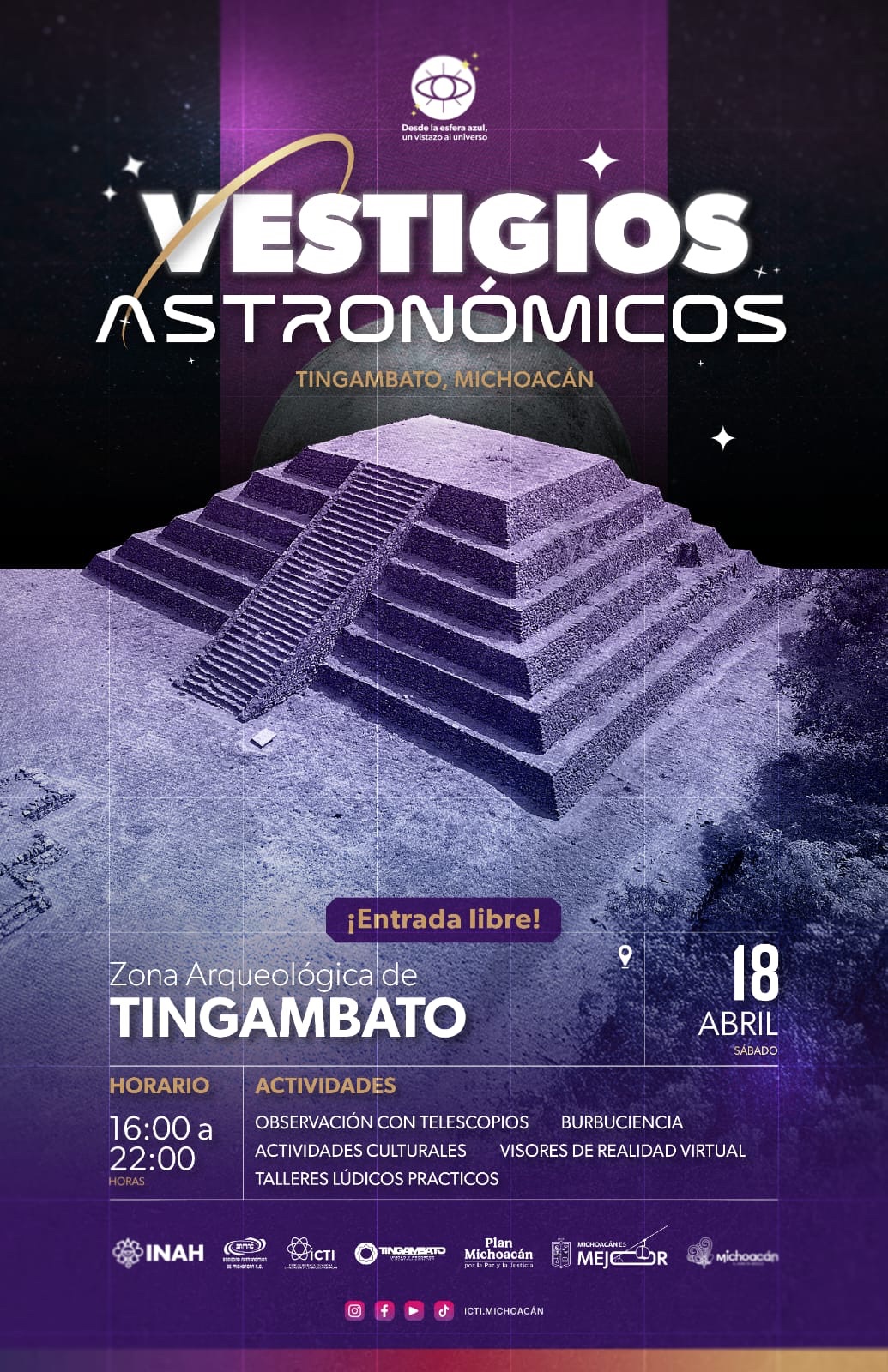 El Instituto de Ciencia, Tecnología e Innovación (ICTI), en colaboración con el Instituto Nacional de Antropología e Historia (INAH), llevará a cabo el evento “Vestigios Astronómicos” el próximo sábado 18 de abril en la Zona Arqueológica de Tingambato. Esta iniciativa busca fusionar el legado histórico de los asentamientos prehispánicos con la divulgación científica moderna, ofreciendo a los asistentes una perspectiva integral sobre la observación del cosmos. La jornada se desarrollará de las 16:00 a las 22:00 horas, con acceso gratuito para el público en general.