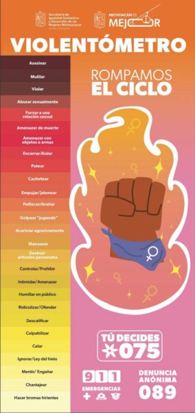 Según el violentómetro, estas formas de agresión incluyen conductas como ridiculizar, descalificar, controlar, celar, humillar, intimidar o limitar la comunicación. Anguiano González subrayó que estas prácticas no deben considerarse normales en ninguna relación, ya que pueden escalar hacia consecuencias letales.