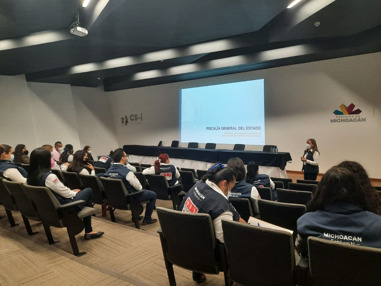 Morelia, Michoacán, a 20 de mayo de 2021.- A fin de proporcionar a las personas herramientas que les permitan ejercer su derecho de acceso a la justicia a través de salidas alternas, la Fiscalía General del Estado de Michoacán (FGE) impartió una charla en materia de Mecanismos Alternativos de Solución de Controversias (MASC), dirigido a integrantes del C5i de la Secretaría de Seguridad Pública de Michoacán (SSP).