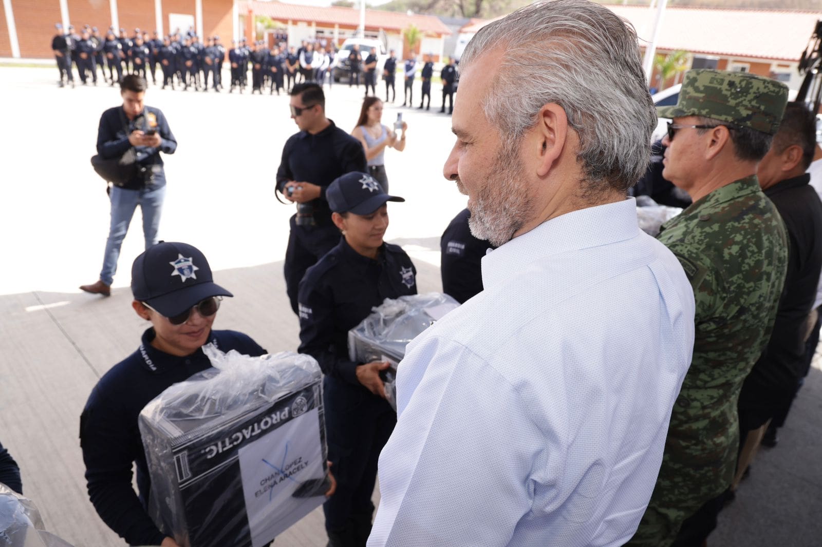Informó que para esta segunda dotación se entregarán más de 4 mil uniformes y la intención es que cada elemento disponga de tres vestimentas oficiales y los instrumentos necesarios para desarrollar sus funciones.