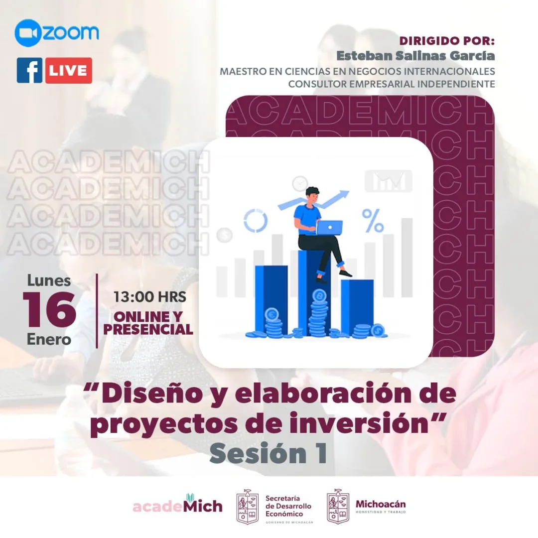 Morelia, Michoacán, 16 de enero del 2023.-* Con el tema Diseño y elaboración de proyectos de inversión, este lunes inicia la semana dedicada a ese tema, fundamental para la viabilidad de las empresas, como parte de la capacitación a emprendedores y empresarios que ofrece la Secretaría de Desarrollo Económico (Sedeco).