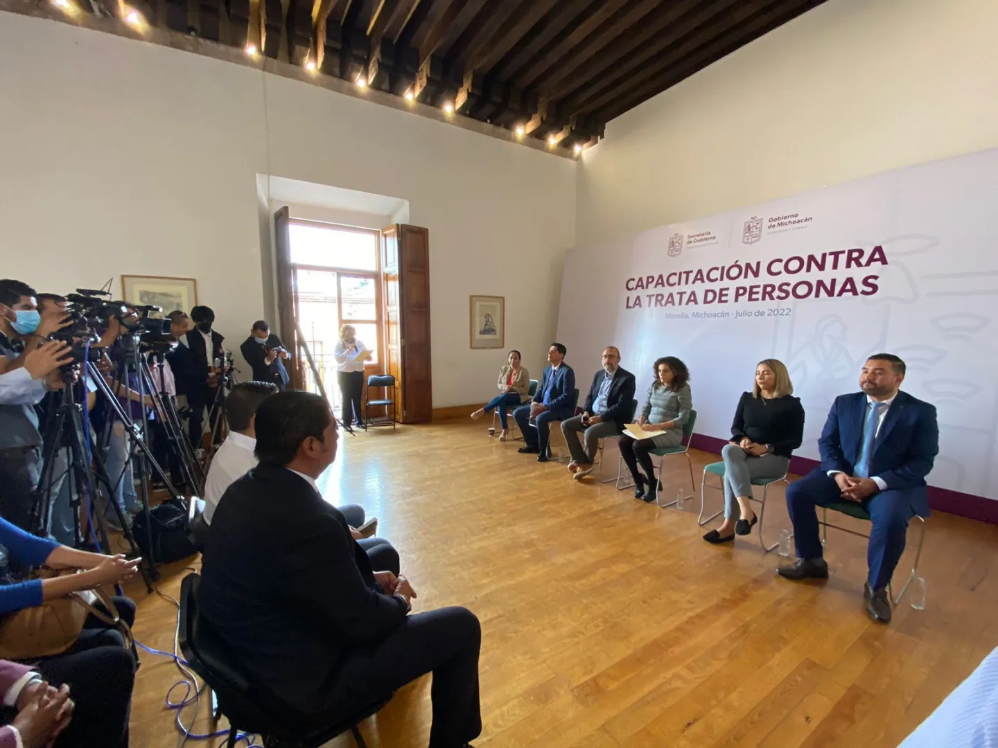 Morelia, Michoacán.- Con el objetivo de ampliar el criterio de las y los servidores públicos e incrementar la eficiencia en el ejercicio de su función, la Secretaría de Gobierno, a través de la Dirección de Derechos Humanos, arrancó este día la Jornada de Capacitación contra la Trata de Personas.