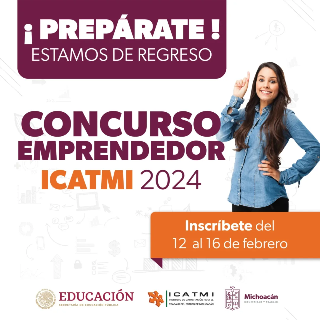 Morelia, Michoacán, 13 de febrero de 2024.- El Instituto de Capacitación para el Trabajo del Estado de Michoacán lanzó la convocatoria del Concurso Emprendedor Icatmi 2024, dirigido a estudiantes y egresados de los años 2022 a la fecha, el cual tiene por objetivo impulsar el emprendimiento, el empleo y autoempleo mediante la capacitación formal.