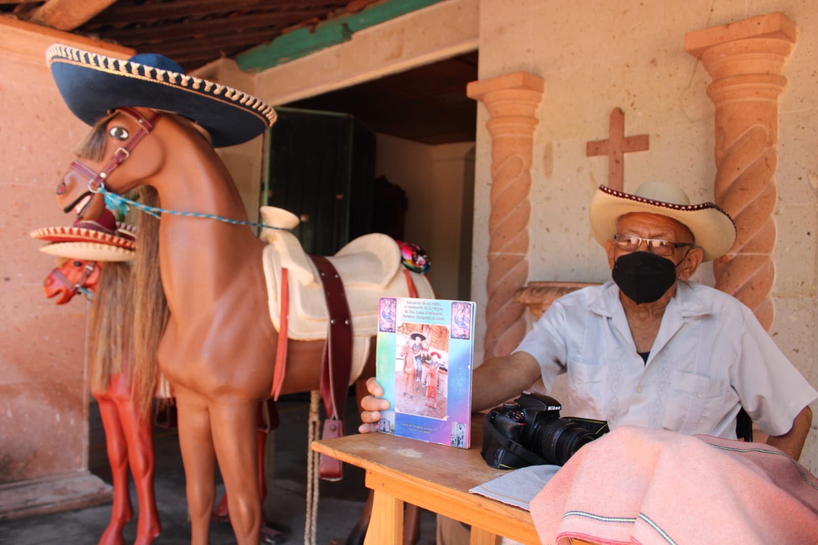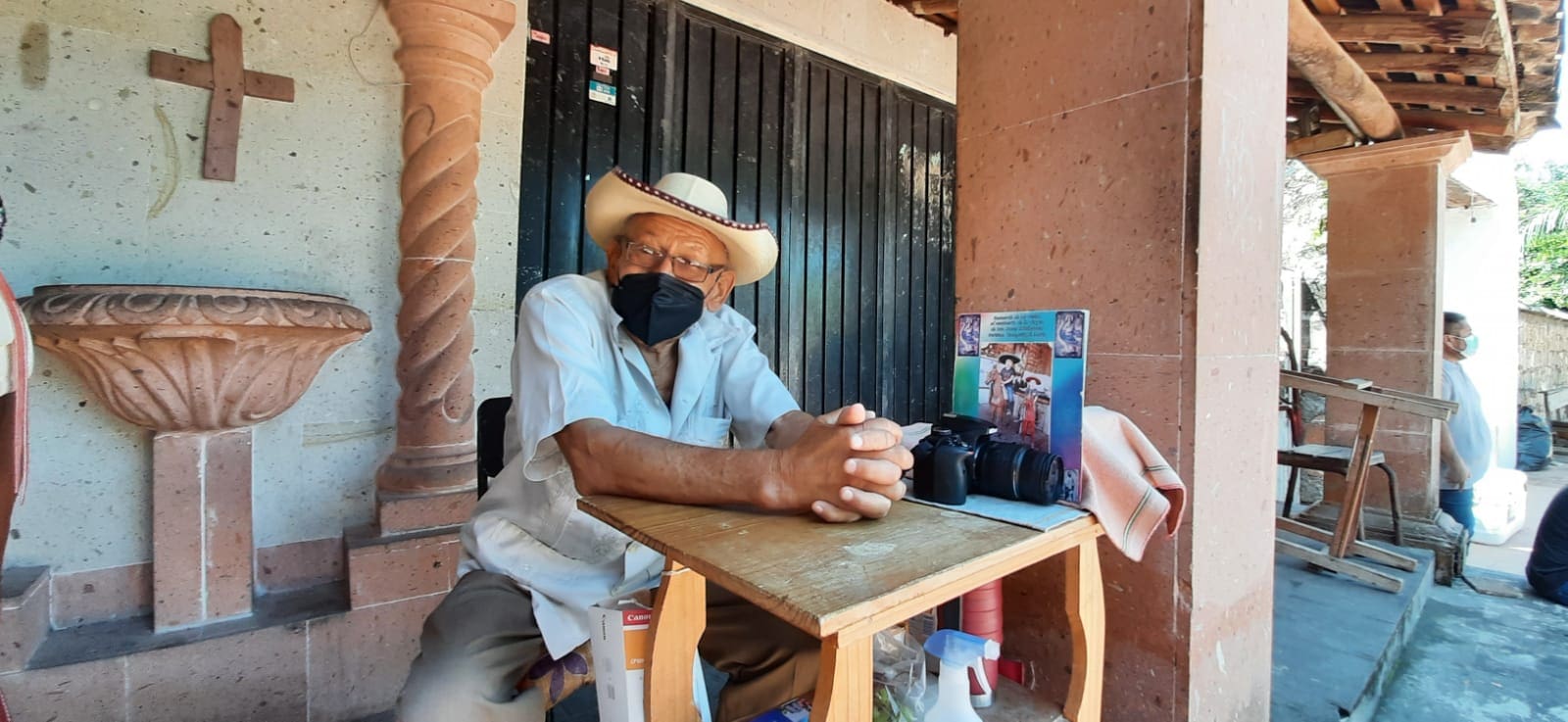 J. Ascensión Mejía Huipio, mejor conocido como Chon, de 80 años de edad, se gana la vida en el atrio de la iglesia tomando fotos a los visitantes.