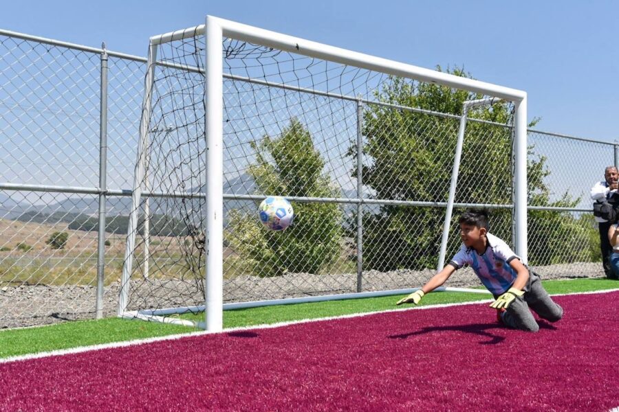 En cuanto a la infraestructura deportiva, la institución reportó la edificación de una cancha de fútbol 7 con una superficie de 34.95 por 55 metros. El equipamiento entregado incluye pasto sintético, porterías, malla ciclónica, gradas y luminarias. La dependencia señaló que estas instalaciones buscan fomentar la convivencia y la prevención del delito en la región.